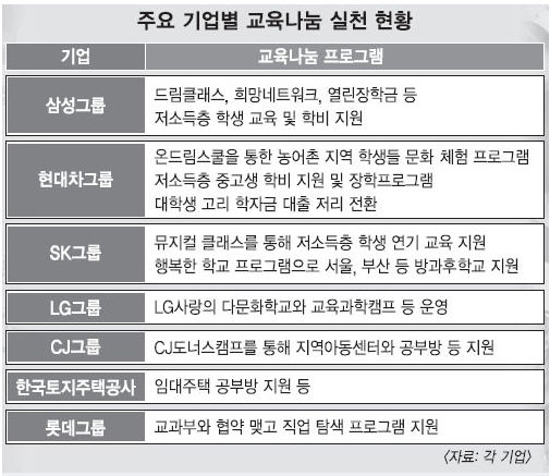기대할 수 없기 때문이다. 이에 따라 기업들이 나섰다. ‘교육의 사다리’를 복원해 양극화를 해결하기 위한