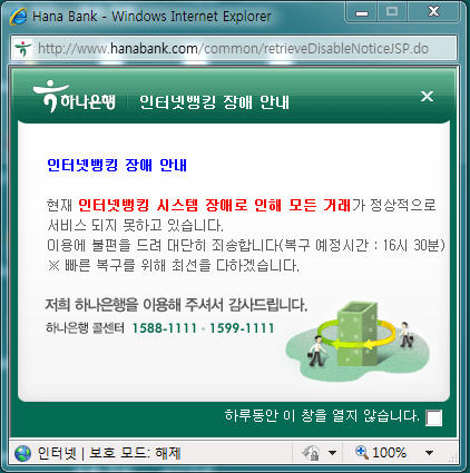 [안내] 하나은행 홈페이지 장애 안내 (1/26)