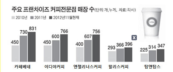 ■ 우려하던 '커피전문점 사태' 벌어졌다 - 증가율 주춤… 한계 도달했나