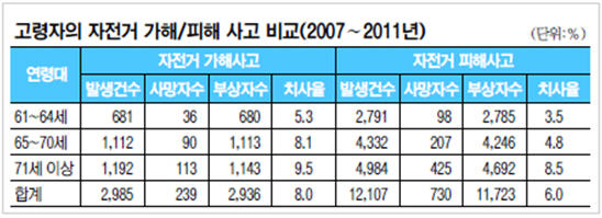 ■ 급증하는 자전거 사고… 노인들 무방비 노출