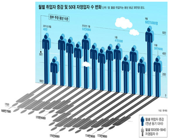좋으냐"고 물으면 한숨과 함께 이런 답이 돌아온다. 정부는 매달 취업한 사람 수가 1년 전에 비해 얼마나