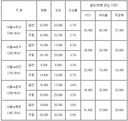 ■ 시외·고속버스 요금 2년 반만에 인상