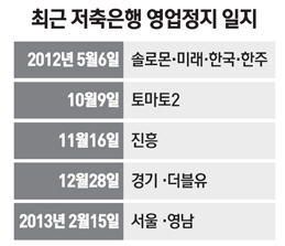 지난 15일 서울과 영남저축은행을 영업정지시킨 금융감독 당국은 "사실상 저축은행 구조조정을 마무리했다"고 했다. 솔로몬ㆍ한국ㆍ미래 같은 대형 저축은행 계열사가 모두 퇴출당했고 부실이 심하던 중소형 저축은행도 모두 문을 닫았기 때문이다. 큰 가닥은 잡았지만 여전히 잔불은 남아 있다. 영업정지되는 저축은행이 올해도 나올 것이라는 얘기다. 당장 신라가 관건이다. 신라는 15일 함께 영업정지될 예정이었지만 부실금융기관 지정을 막기 위한 가처분신청이 법원에서 일부 받아들여져 목숨을 연명하고 있는 상태다. 부실한 저축은행도 더 있다. 2012회계연도(2012년 7월~2013년 6월) 상반기 결산을 공시한 16개 저축은행 가운데 상당수가 자본잠식률이 70%를 넘는다. [김영필 기자]