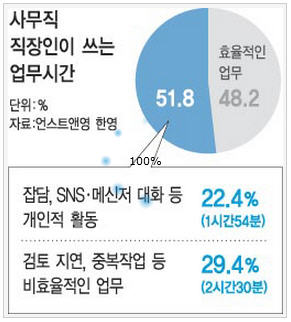 ■ 근무 중에 잡담·SNS 등 활동… 직장인, 하루 1시간54분 쓴다