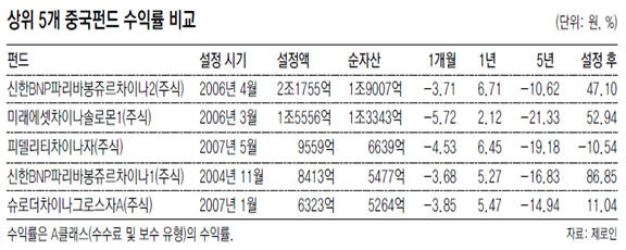 중국 펀드 투자자들은 괴롭다. 한때 ‘황금알’을 낳을 것처럼 알려져 투자자들을 끌어 모았지만 주요 펀드들은 대부분 마이너스 수익률을 내고 있다. 중국 펀드는 국내 투자자들이 가입한 해외 펀드의 절반을 차지할 정도로 비중이 높다. 국내 주식, 부동산 투자에서 자산가치 하락을 겪는 많은 투자자가 ‘대체 투자수단’으로 선택한 해외 펀드마저 손실을 보고 있는 셈이다. ○ 괴로운 투자자 ○ 언제 회복하나 ▼ “中증시 상승동력 안보여 더 걱정” [황형준 기자]