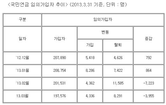 ■ 국민연금 임의가입자 3개월새 2만7천명 탈퇴