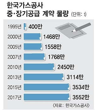 1734만t씩 수입하는 중?장기도입 계약 7건을 체결했다. 가스업계 관계자는 “가스공사가 가격과 수요 전망도