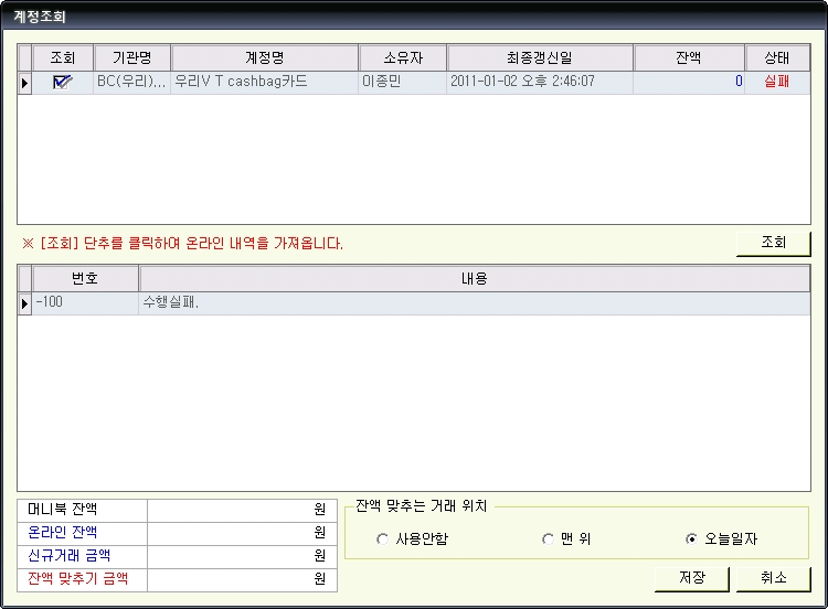 공지 [안내] 우리은행 및 산업은행 & 전북은행, 우체국, 삼성카드, 롯데카드 조회가 안될 경우 머니북 2013-05-02 1573961
